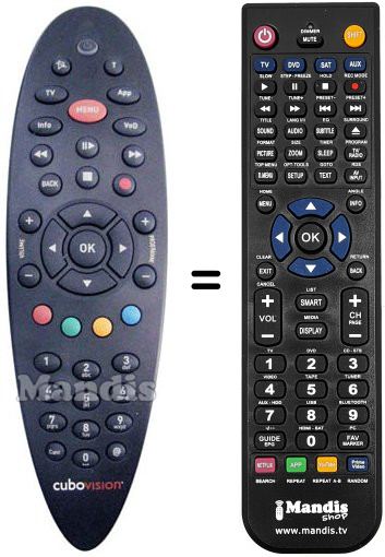 Télécommande qui remplace celle d'origine car elle possède les mêmes fonctions.