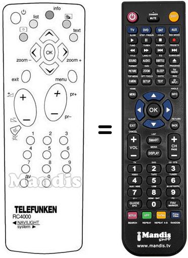 Télécommande qui remplace celle d'origine car elle possède les mêmes fonctions.
