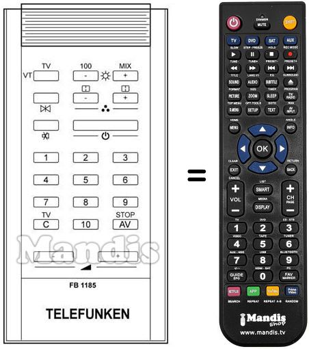 Télécommande qui remplace celle d'origine car elle possède les mêmes fonctions.