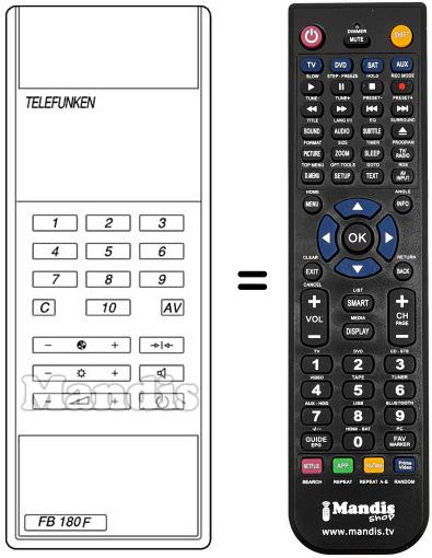 Télécommande qui remplace celle d'origine car elle possède les mêmes fonctions.