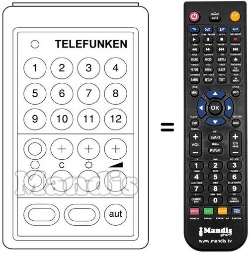 Télécommande qui remplace celle d'origine car elle possède les mêmes fonctions.