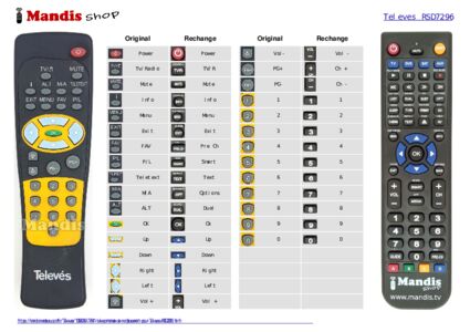 Un document est inclus pour vous aider à utiliser facilement la nouvelle télécommande, en indiquant la correspondance des boutons.