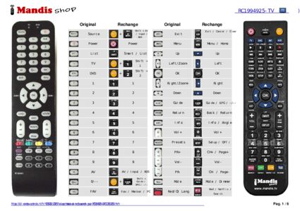 Cette télécommande remplace entièrement votre RC1994925 (04TCLTEL0203) et offre toutes les fonctions de l'originale.