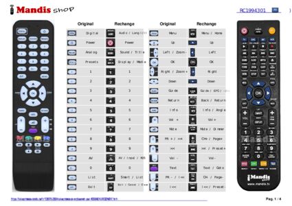Un document est inclus pour vous aider à utiliser facilement la nouvelle télécommande, en indiquant la correspondance des boutons.