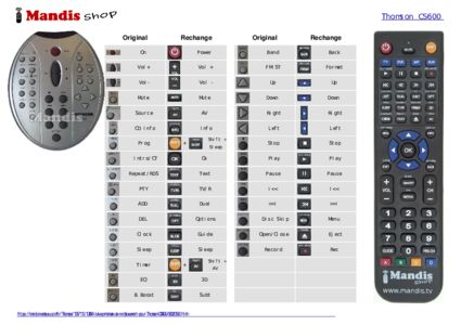 Un document est inclus pour vous aider à utiliser facilement la nouvelle télécommande, en indiquant la correspondance des boutons.