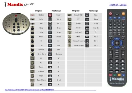 Un document est inclus pour vous aider à utiliser facilement la nouvelle télécommande, en indiquant la correspondance des boutons.
