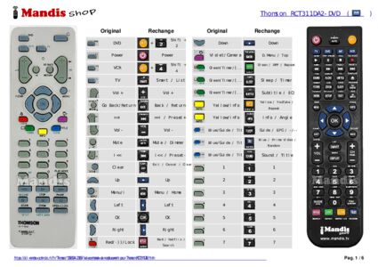Un document est inclus pour vous aider à utiliser facilement la nouvelle télécommande, en indiquant la correspondance des boutons.