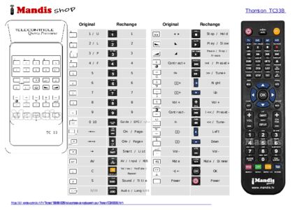 Un document est inclus pour vous aider à utiliser facilement la nouvelle télécommande, en indiquant la correspondance des boutons.
