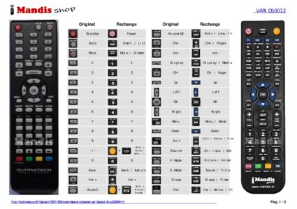 Un document est inclus pour vous aider à utiliser facilement la nouvelle télécommande, en indiquant la correspondance des boutons.