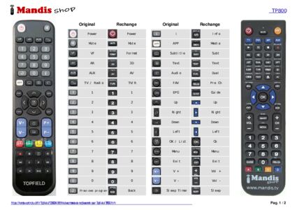 Un document est inclus pour vous aider à utiliser facilement la nouvelle télécommande, en indiquant la correspondance des boutons.