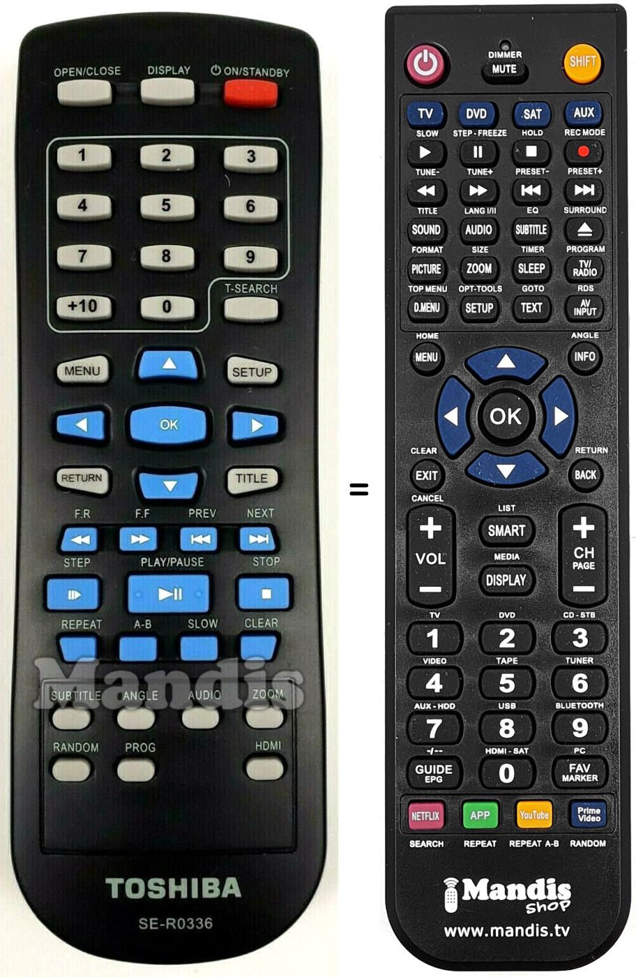 Télécommande qui remplace celle d'origine car elle possède les mêmes fonctions.