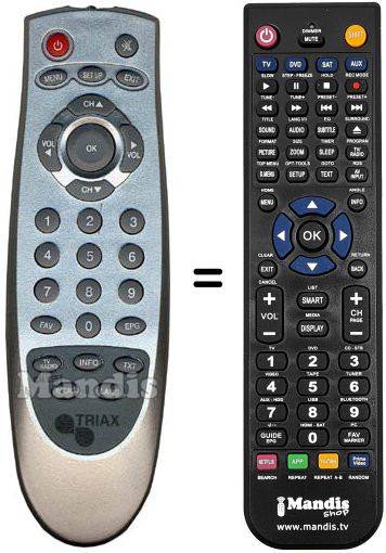 Télécommande qui remplace celle d'origine car elle possède les mêmes fonctions. Il ne s'agit pas d'une télécommande universelle mais d'une télécommande qui remplace celle d'origine. Vous recevrez la télécommande prête à fonctionner, vous n'aurez qu'à mettre les piles. Il n'est pas nécessaire de la programmer. Nous vous garantissons que la télécommande aura exactement les mêmes fonctions que celle d'origine.