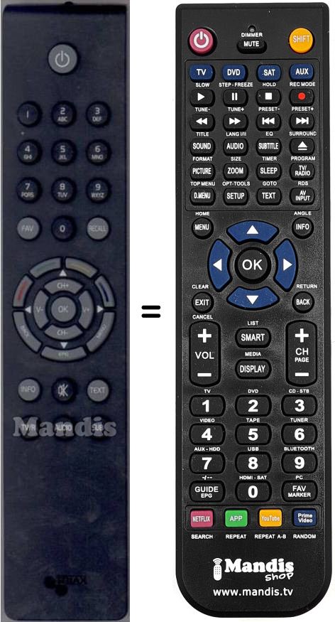 Télécommande qui remplace celle d'origine car elle possède les mêmes fonctions.