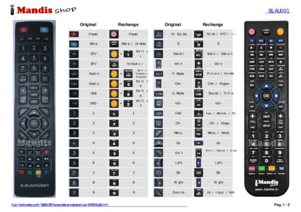 Un document est inclus pour vous aider à utiliser facilement la nouvelle télécommande, en indiquant la correspondance des boutons.