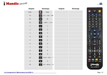 Un document est inclus pour vous aider à utiliser facilement la nouvelle télécommande, en indiquant la correspondance des boutons.