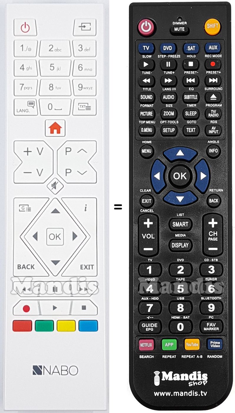 Ci-dessous, nous vous montrerons la correspondance entre chaque bouton de la télécommande d'origine et le bouton qui effectue la même fonction sur la télécommande de remplacement. Dans certains cas, vous devrez peut-être appuyer sur la touche SHIFT avant d'appuyer sur un autre bouton pour effectuer certaines actions. Ces fonctions supplémentaires sont souvent peu utilisées et sont incluses pour faciliter la compréhension de la télécommande de remplacement, ou parce que la télécommande d'origine comporte plus de boutons que son équivalent.