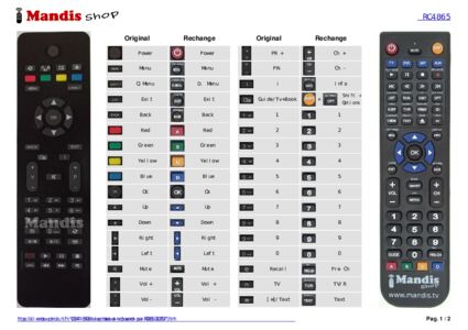 Un document est inclus pour vous aider à utiliser facilement la nouvelle télécommande, en indiquant la correspondance des boutons.