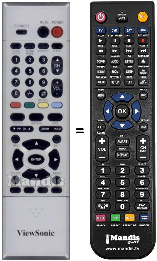 Télécommande qui remplace celle d'origine car elle possède les mêmes fonctions.