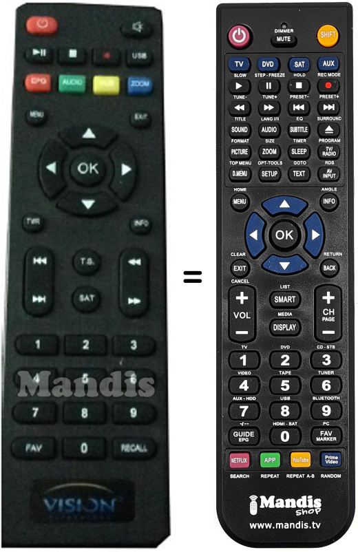 Télécommande qui remplace celle d'origine car elle possède les mêmes fonctions.