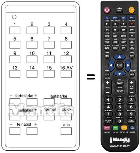 Télécommande qui remplace celle d'origine car elle possède les mêmes fonctions. Il ne s'agit pas d'une télécommande universelle mais d'une télécommande qui remplace celle d'origine. Vous recevrez la télécommande prête à fonctionner, vous n'aurez qu'à mettre les piles. Il n'est pas nécessaire de la programmer. Nous vous garantissons que la télécommande aura exactement les mêmes fonctions que celle d'origine.