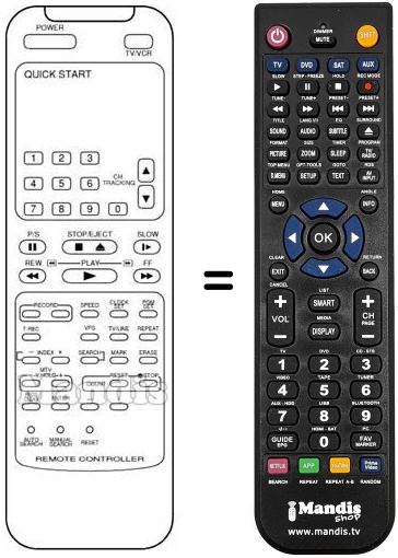 Télécommande qui remplace celle d'origine car elle possède les mêmes fonctions.