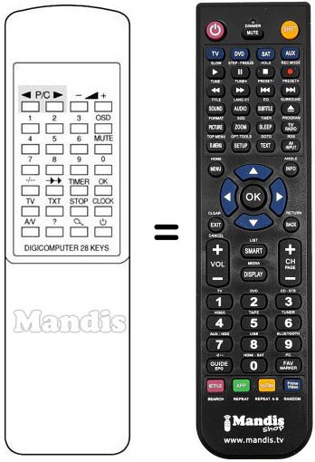 Télécommande qui remplace celle d'origine car elle possède les mêmes fonctions.