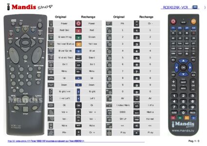 Un document est inclus pour vous aider à utiliser facilement la nouvelle télécommande, en indiquant la correspondance des boutons.