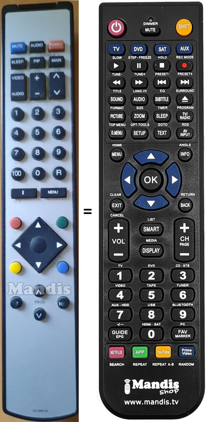 Télécommande qui remplace celle d'origine car elle possède les mêmes fonctions.