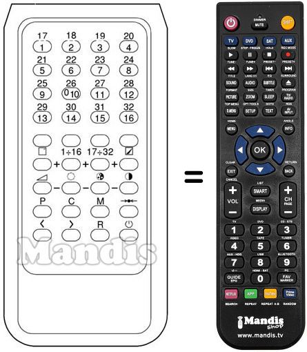 Télécommande qui remplace celle d'origine car elle possède les mêmes fonctions.
