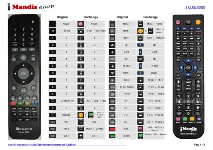 Un document est inclus pour vous aider à utiliser facilement la nouvelle télécommande, en indiquant la correspondance des boutons.