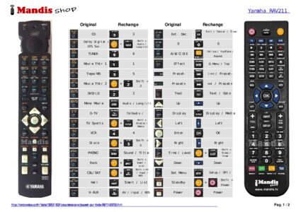 Un document est inclus pour vous aider à utiliser facilement la nouvelle télécommande, en indiquant la correspondance des boutons.