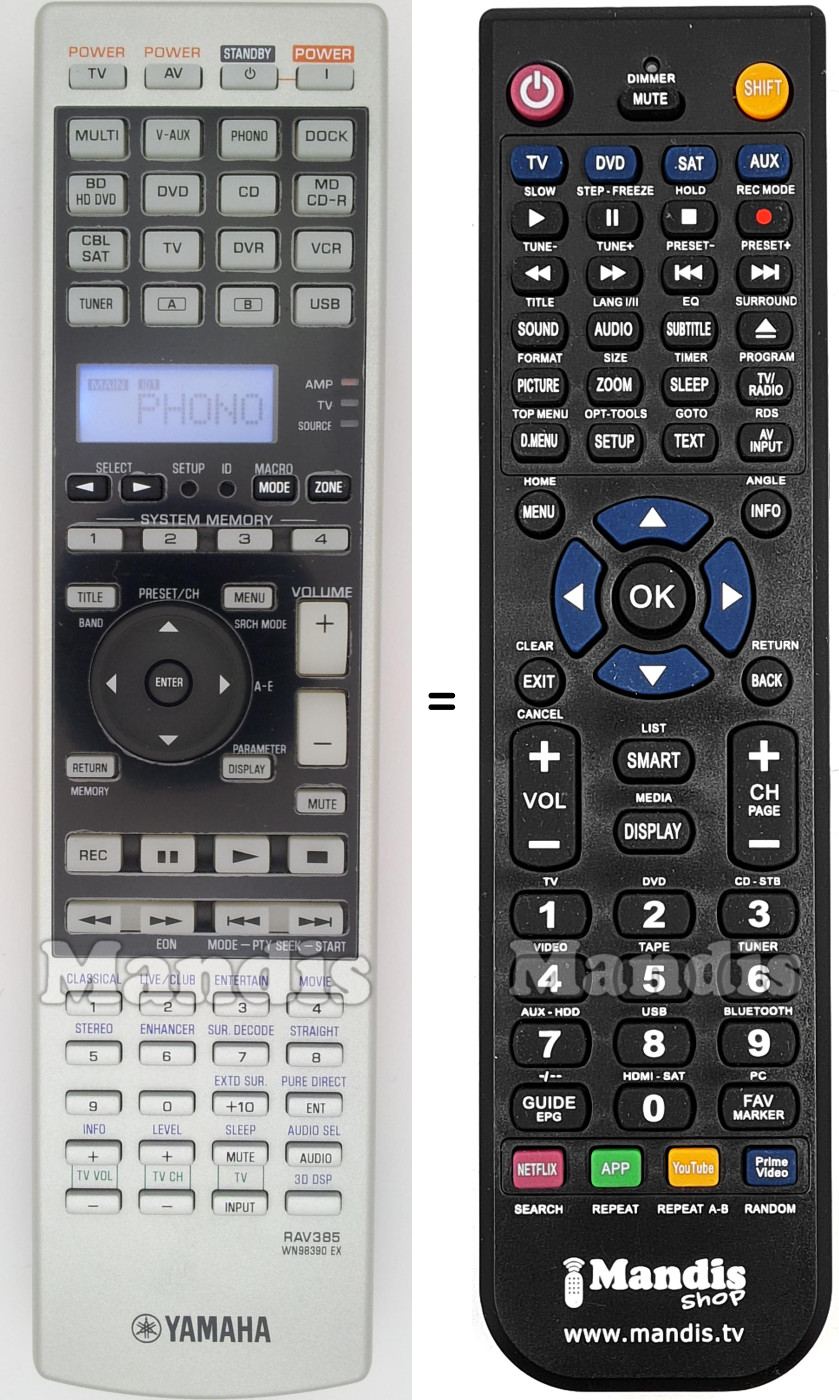 Cette télécommande remplace entièrement votre RAV385 (WN983900) et offre toutes les fonctions de l'originale.