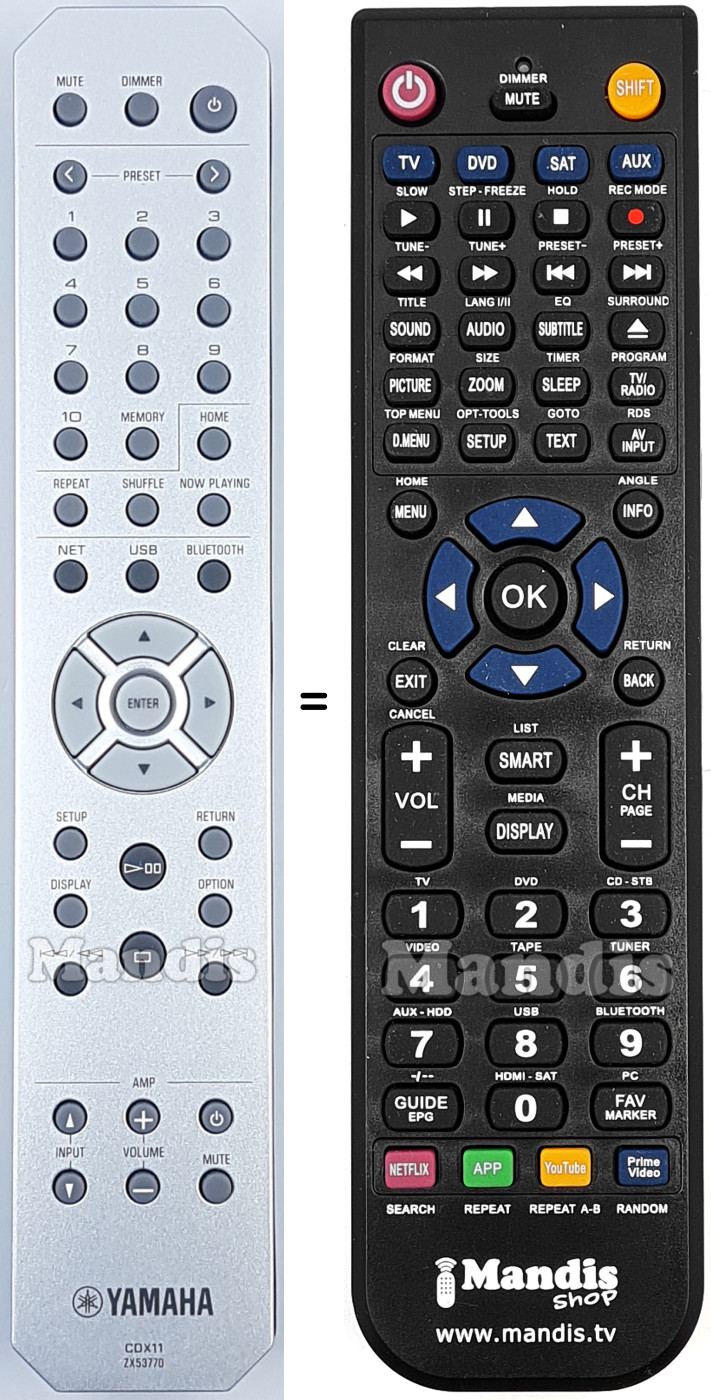 Télécommande équivalente Yamaha CRX-330Disponible en stock22,73 € (TVA incluse)