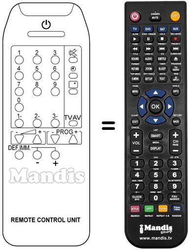 Télécommande qui remplace celle d'origine car elle possède les mêmes fonctions.