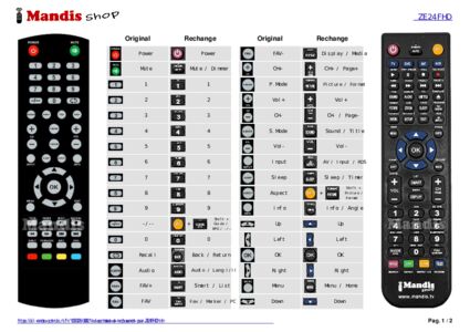 Un document est inclus pour vous aider à utiliser facilement la nouvelle télécommande, en indiquant la correspondance des boutons.